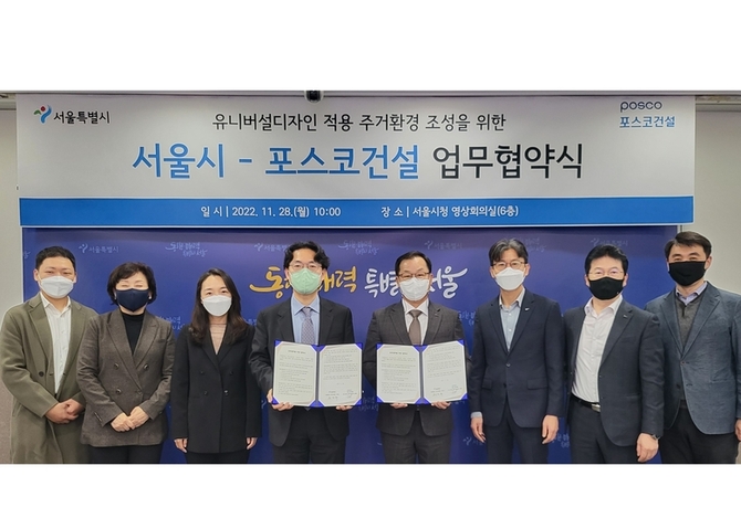 인더뉴스 홍승표 기자ㅣ포스코건설은 지난 28일 서울시와 'ESG 가치 실현 및 주거환경 내 유니버설디자인 저변확대'를 위한 MOU를 체결했다고 29일 밝혔습니다. 유니버설디자인은 '모든 사람을 위한 디자인'으로 다양한 사람들이 모두 제약없이 안전하고 편리하게 이용할 수 있는 디자인을 의미합니다. 협약에 따라 포스코건설은 더샵 아파트 단지 내 유니버설디자인…