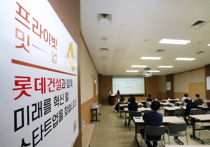 인더뉴스 홍승표 기자ㅣ롯데건설은 지난 3일 신생 스타트업 8개사와 함께 ‘프라이빗 밋-업데이(Private Meet-up Day)’ 행사를 진행했다고 7일 밝혔습니다. 롯데건설에 따르면, 행사에 나선 8개 스타트업은 나인티나인, 엘핀, 팀워크, 스마트인사이드AI, 유에스엔지니어링, 알머티리얼즈, 비엠엘, 프런트9입니다. 해당 스타트업은 지난 9월부터 20여일 간 부산…