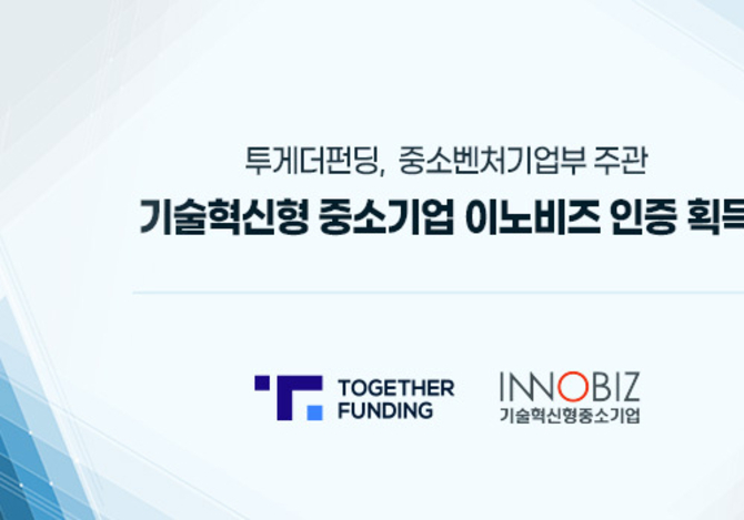 인더뉴스 양귀남 기자ㅣ투게더펀딩은 중소벤처기업부가 주관하는 이노비즈(기술혁신형 중소기업 마크) 인증을 취득했다고 31일 밝혔다. 이노비즈 인증은 혁신(Innovation)과 기업(Business)의 합성어로 기술 우위를 바탕으로 경쟁력을 확보한 기술혁신형 중소기업에게 수여하는 국가 인증제도다. 3년 이상의 안정적인 성장을 이룬 기술혁신 기업을 대상으…