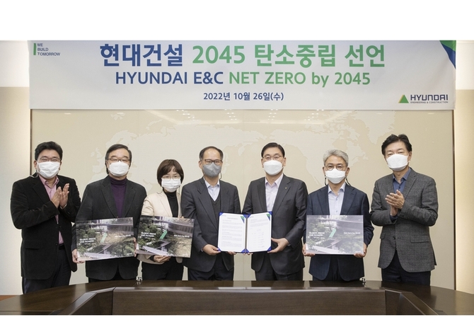 인더뉴스 홍승표 기자ㅣ현대건설[000720]이 오는 2045년을 '탄소중립' 달성의 해로 정하고 전사적인 노력을 추진합니다. 27일 현대건설에 따르면, 지난 26일 이사회 의결을 통해 국내 상장 건설사 첫 2045년 탄소중립을 선언했습니다. 이와 동시에 탄소중립 비전을 담은 보고서 'Global Green One Pioneer: Net Zero by 2045'를 통해 탄소중립 이…