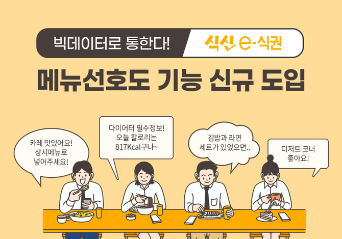 인더뉴스 양귀남 기자ㅣ식신은 기업용 모바일 식권 서비스 ‘식신e식권’에 ‘메뉴선호도 서비스’를 신규 도입했다고 29일 밝혔다. 메뉴선호도 서비스는 구내식당을 이용하는 임직원들의 식사 만족도에 대한 평가를 구내식당 위탁 운영 업체에 보낼 수 있는 기능이다. 식신e식권 앱에 상세한 평가 내용과 별점을 함께 기재할 수 있어 사업자가 고객들의 피드백을 확…
