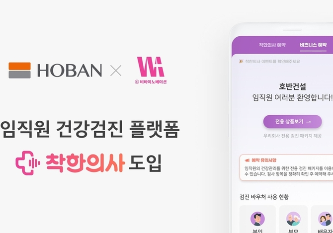 인더뉴스 홍승표 기자ㅣ호반건설은 임직원들의 건강검진 예약과 건강관리를 돕고자 비바이노베이션의 건강검진 플랫폼 ‘착한의사’를 도입했다고 5일 밝혔습니다. ‘착한의사’는 ▲검진 예약 ▲검진 결과 모바일 조회 ▲의료진 원격 상담 ▲건강 예후 모니터링 ▲맞춤 검진 인공지능(AI) 추천 등 원스톱 검진 관리 서비스를 제공 중입니다. 호반건설은 자회사 플랜에…