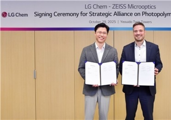 인더뉴스 김용운 기자ㅣLG화학[051910]은 독일 광학 기업 자이스(ZEISS)와 차량용 홀로그래픽 윈드쉴드 디스플레이(HWD, Holographic Windshield Display)의 핵심 소재인 '포토폴리머 필름(Photopolymer Film) 사업 협력 계약'을 체결했다고 30일 밝혔습니다. 차량용 HWD는 전면 유리창(Windshield)을 투명 디스플레이로 활용해…