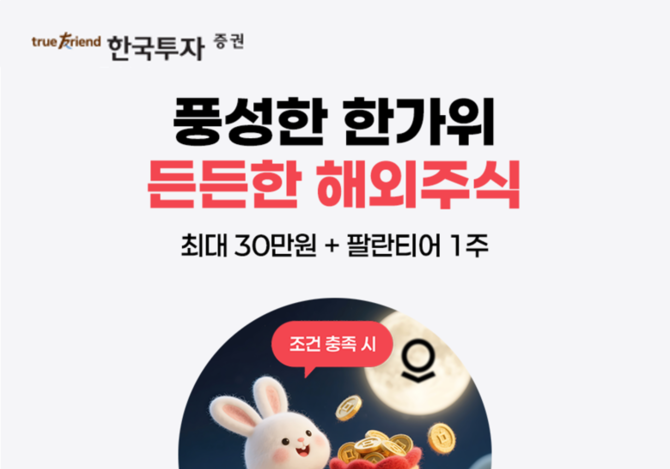 인더뉴스 박호식 기자ㅣ한국금융지주 자회사 한국투자증권(사장 김성환)은 온라인 금융투자서비스 뱅키스(BanKIS) 고객을 대상으로 추석특집 거래 이벤트를 진행한다고 2일 밝혔습니다. 10월 3일부터 10일까지 연휴 기간동안 진행됩니다. 해외주식 2억원 이상 거래시 2만원, 6억원 이상 거래 시 10만원, 10억원 이상 거래시 30만원 혜택을 각 구간별 100명씩 추첨…