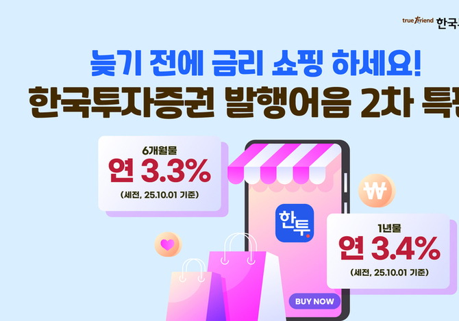 인더뉴스 박호식 기자ㅣ한국금융지주 자회사 한국투자증권(사장 김성환)은 ‘퍼스트 발행어음’ 특판을 2차로 진행한다고 2일 밝혔습니다. 이번 특판 상품은 6개월물 연 3.3%, 1년물 연 3.4%의 세전금리를 제공합니다. 앞서 지난 8월 선보였던 1차특판은 모집규모 1조원이 불과 2주만에 조기 소진되며 투자자들의 뜨거운 호응을 얻었습니다. 고객 수요에 따라 마련된…