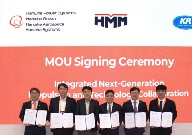 인더뉴스 김용운 기자ㅣHMM(대표이사 사장 최원혁)이 한화그룹 4개 계열사(한화파워시스템, 한화오션, 한화에어로스페이스, 한화시스템), KR(한국선급)과 '차세대 무탄소 추진체계 공동 개발 위한 기술협력 MOU'를 체결했다고 23일 밝혔습니다. '차세대 무탄소 추진체계'는 암모니아 가스터빈(GT)과 연료전지(Fuel Cell)를 통해 만들어낸 전력으로 선박을 운…