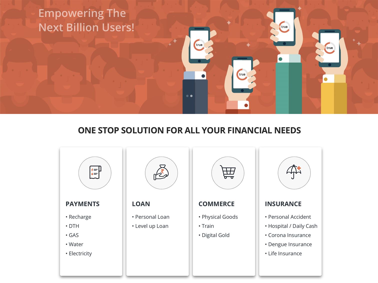 | 2015 | • 12월 인도 4개 지역 서비스 확대 • 9월 ‘트루밸런스’ 월렛 기능 업데이트 • 3월 1차 초기 투자 유치 (본엔젤스, 메가인베스트먼트) • 1월 ‘트루밸런스’ 정식 출시 |