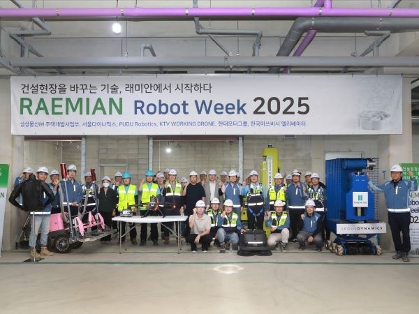 인더뉴스 제해영 기자ㅣ삼성물산 건설부문은 지난달 30일 반포3주구 재건축 현장에서 ‘RAEMIAN Robot Week 2025’를 열고 주택 건설 로봇 5종을 시연했다고 1일 밝혔습니다. 이번 행사는 건설 현장에 로봇 기술을 적용해 위험 요소를 줄이고 생산성을 높이는 방안을 모색하기 위해 마련됐습니다.