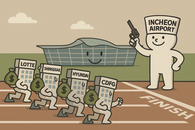 글로벌 1위 면세 사업자인 CDFG가 절치부심해 자본력을 바탕으로 인천공항 입성을 다시 노릴 거란 관측도 나옵니다. 2023년 당시 CDFG는 DF1·DF2 입찰에 참여했지만 사업권 기준 3위에 그쳤습니다. 인천공항에서 DF5 권역을 운영 중인 현대면세점도 유력 후보군으로 분류됩니다. 현대면세점은 최근 부실 영업점 통폐합 등 고강도 사업 구조조정을 진행 중입니다.