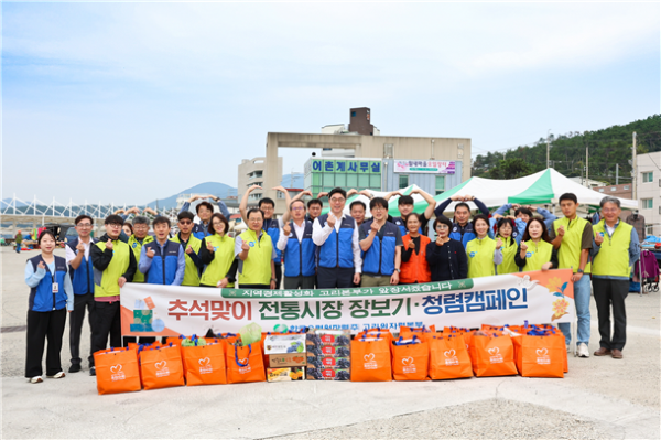 또한 2일에는 ‘추석 맞이 전통시장 장보기 행사’를 개최했습니다. 이상욱 본부장과 임직원들이 월내 5일장에서 청과, 육류, 잡화 등 다양한 지역 생산 물품을 구입해 기장군 내 취약계층 40가구에 전달했습니다.