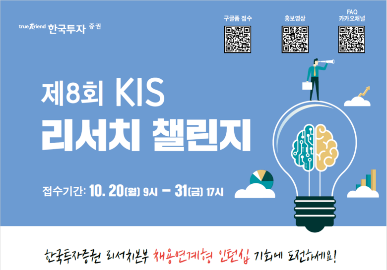 KIS 리서치챌린지 관련 자세한 내용은 카카오톡 채널 '2025 제8회 KIS 리서치 챌린지'를 통해 확인할 수 있다.