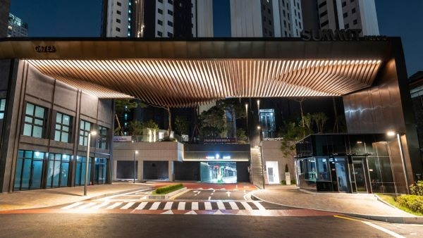 특히 아이레벨(Eye Level)에서 경험되는 ▲선큰정원 ▲문주 ▲커넥티드 브릿지 ▲동출입구 등 주요 공간에는 은은한 간접조명 기법이 적용돼 사용자의 동선과 시선을 자연스럽게 유도했습니다. 이는 화려함보다 절제된 미학을 강조하는 SUMMIT의 디자인 정체성을 보여주는 요소로 평가됩니다.