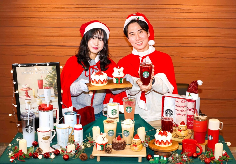 30일 업계에 따르면 스타벅스 코리아는 연말 케이크 4종을 선보입니다. 베어리스타를 표현한 ‘산타 베어리스타 케이크’를 포함해 딸기 모자를 쓴 눈사람 모양의 ‘눈사람 바움쿠헨’, ‘딸기 프레지에 케이크’, ‘딸기 촉촉 누텔라 케이크’ 등입니다. 크리스마스 시즌과 어울리는 텀블러, 보온병, 머그컵 등 12종으로 구성된 딜라이트 굿즈는 매장과 온라인 채널을 통해 판매합니다.