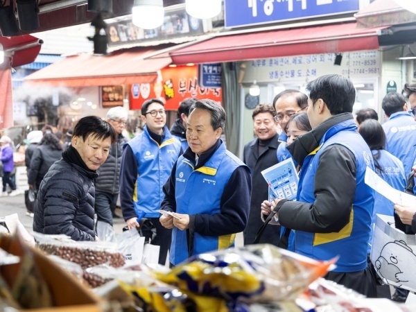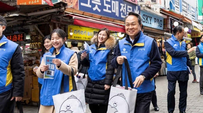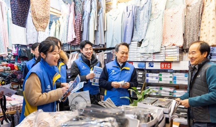 인더뉴스 문승현 기자ㅣ진옥동 신한금융그룹 회장은 10일 "임직원의 자발적 참여와 지역사회 중심 사회공헌활동을 통해 어려운 이웃에 실질적인 도움을 전하는 상생금융을 지속적으로 실천하겠다"고 말했다. 진옥동 회장은 이날 임직원과 남대문시장을 찾아 독거노인에 전할 설명절 물품을 구매하고 소상공인과 소통하며 민생현장의 목소리를 들었다. 전날 시작된 신한금융의 '희망을 나누는 설맞이 상생캠페인'은 11일까지 이어진다.