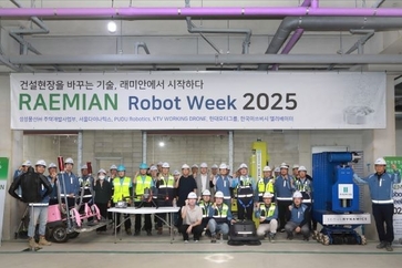 인더뉴스 제해영 기자ㅣ삼성물산 건설부문은 지난달 30일 반포3주구 재건축 현장에서 ‘RAEMIAN Robot Week 2025’를 열고 주택 건설 로봇 5종을 시연했다고 1일 밝혔습니다. 이번 행사는 건설 현장에 로봇 기술을 적용해 위험 요소를 줄이고 생산성을 높이는 방안을 모색하기 위해 마련됐습니다. 행사에는 삼성물산 김명석 주택사업본부장(부사장)을 비롯해 서울다이나믹스 이거송 대표이사, 케이티브이워킹드론 김윤철 대표이사, 푸두로보틱스, 현대자동차그룹 로보틱스랩 관계자와 한국미쓰비시엘리베이터 박연규 본부장(전무) 등이 참석했습니다. 이들은 로봇 협업사와 함께 기술 협력 방안을 논의했습니다. 시연된 로봇은 ▲자율주행 지게차 ▲자재 이동 로봇 ▲청소 로봇 ▲살수 드론 ▲웨어러블 로봇 등 5종입니다. 자율주행 지게차와 자재 이동 로봇은 야간에 자재를 자동 운반해 주간 작업 간섭을 최소화하고 작업 효율을 높입니다. 특히 자재 이동 로봇은 엘리베이터를 호출해 직접 탑승하고 아파트 내부까지 운반할 수 있습니다. 케이티브이워킹드론의 살수 드론은 해체 공사 현장에서 근접 작업 없이 고층 구조물에 살수를 가능하게 해 작업자의 안전을 강화합니다. 또한 푸두로보틱스의 청소 로