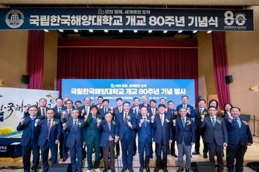 인더뉴스 제해영 기자ㅣ국립한국해양대학교가 개교 80주년을 맞아 새로운 100년의 항해를 향한 출발을 알렸습니다. 대학은 지난 28일 신축 도서관 김강희홀에서 ‘개교 80주년 기념식’을 개최하며, 해양 가족이 한자리에 모여 지난 80년의 발자취를 돌아보고 미래 도약을 다짐했습니다. 이번 행사는 대한민국 해양산업의 성장을 이끌어 온 한국해양대의 80년 역사를 기념하는 자리로 마련됐습니다. 류동근 총장을 비롯해 채영길 총동창회장, 박형준 부산시장, IMO(국제해사기구) 임기택 명예사무총장, 역대 총·학장과 명예교수, 발전기금 기부자, 해운업계 및 유관기관 관계자, 학생 등 약 500여 명이 참석했습니다. 기념식은 대학 발전에 기여한 이들에게 감사의 뜻을 전하는 순서로 시작됐습니다. 학술대상과 근속공로 표창, ‘자랑스러운 아치인상’, 특별상, 총동창회장상 등이 수여됐으며, 학생 동아리의 공연과 ‘붓 퍼포먼스’, 드론쇼가 이어져 행사장을 환하게 물들였습니다. 류동근 총장은 기념사에서 “개교 80주년은 우리 대학이 걸어온 영광의 역사를 되새기고, 세계적인 해양 특성화 대학으로 재도약하는 새로운 출발선이 될 것”이라며 “구성원과 동문, 지역사회의 화합을 통해 다가올 10