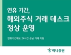 인더뉴스 박호식 기자ㅣ하나증권(대표이사 강성묵)이 1일 “추석 연휴 기간에도 손님들이 불편함 없이 해외 주식을 투자할 수 있도록 해외주식 데스크를 정상운영한다”고 밝혔습니다. 하나증권은 21개 국가의 주식거래를 지원하고 있으며, 연휴 기간 동안 휴장을 제외한 국가의 거래는 모두 정상 지원합니다. 중국증시는 국내와 동일하게 휴장이며 6일은 대만이, 7일에는 홍콩증시가 휴장입니다. 손님들이 온오프라인으로 불편함 없이 거래할 수 있도록 해외데스크는 24시간 운영됩니다. 남택민 하나증권 PWM영업본부장은 “오랜 연휴 기간 발생할 수 있는 해외시장 변동성에 즉시 대처 가능하도록 24시간 데스크 운영에 만전을 기하겠다”고 말했습니다. 한편 하나증권은 신규 비대면 손님들을 대상으로 지난달부터 ‘해외주식 웰컴 이벤트’를 진행하고 있습니다. 계좌를 개설한 손님 전원에게 30달러 상당의 미국 주식 매수 쿠폰과 1천원 상당의 팔란티어(PLTR) 소수점 주식을 지급합니다. 이밖에 미국주식 거래 수수료 전액 면제, 6개월간 달러 환전 우대 혜택 등도 제공합니다.