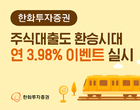 인더뉴스 박호식 기자ㅣ한화투자증권(대표이사 장병호)은 12월31일까지 ‘주식대출도 환승시대 연 3.98% 이벤트’를 진행한다고 밝혔습니다. 타사 국내주식 신용융자 또는 담보대출 보유 고객이 이벤트 기간내 한화투자증권 ‘주식대출 갈아타기’를 이용하면 종목매도나 대출상환 없이 3.98% 금리로 대출을 이전할 수 있습니다. 다만 갈아타기 가능 여부는 대출심사 결과에 따라 달라집니다. 한화투자증권은 ‘주식대출 갈아타기’ 완료 종목에 한해 당일부터 180일 동안 이벤트 금리를 제공하며, 180일 만기 이후에는 정상 금리 대비 3%p 할인금리를 적용합니다. 앞서 한화투자증권은 지난 5월 금융투자업계 최초로 ‘주식대출 갈아타기’ 서비스를 선보였습니다. 마이데이터를 활용해 고객이 대출 가능 여부를 사전에 확인할 수 있으며 기존 주식 포트폴리오를 훼손하지 않고 대출을 갈아탈 수 있어 금융위원회 혁신금융 서비스로 지정된 바 있습니다. 한화투자증권 디지털사업본부 이대일 본부장은 “이번 이벤트는 고객이 부담없이 대출을 환승할 수 있도록 금리와 기간 혜택을 동시에 담았다”며 “앞으로도 투자자들을 위한 실질적인 혜택을 확대해 나가겠다”고 밝혔습니다. 자세한 내용은 한화투자증권 홈페이