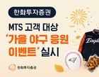 인더뉴스 박호식 기자ㅣ한화투자증권(대표이사 장병호)은 2025 프로야구 포스트시즌을 맞아 MTS(모바일트레이딩시스템) 이용 고객을 위한 ‘가을 야구 응원 이벤트’를 실시한다고 16일 밝혔습니다. 10월31일까지 진행되며 한화투자증권 계좌를 보유한 개인 고객이라면 누구나 ‘한화투자증권 MTS’에 로그인 후 신청할 수 있습니다. 외국인, 법인, 스탁론 계좌 보유 고객은 제외됩니다. 한화투자증권은 MTS 이벤트 페이지 내 응원 문구를 클릭한 고객에게 추첨을 통해 한화이글스 선수 친필 사인볼, 공식 점퍼, 치킨 쿠폰을 제공합니다. 당첨자는 11월4일부터 ‘한화투자증권 MTS’ 이벤트 페이지에서 확인할 수 있습니다. 또 이벤트 신청자 전원에게 미국 대표 종목인 코인베이스, 마이크로소프트, 팔란티어 테크놀로지스 중 하나를 소수점주식으로 최대 30만원 상당으로 랜덤 증정합니다. 한화투자증권 생애최초 신규 고객이라면 당첨 금액의 2배를 지급 받을 수 있습니다. 해외주식 소수점 거래 신청 등 이벤트 조건 충족시 지급되며, 한정 수량 소진시 이벤트 조기 종료 가능성이 있습니다. 한화투자증권 e-biz본부 홍원일 상무는 “고객들이 가을 야구를 보다 특별하게 즐길 수 있도록 이벤