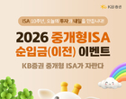 인더뉴스 김홍식 기자ㅣKB증권은(대표이사 이홍구, 강진두)은 투자와 절세에 최적화된 계좌인 중개형 ISA 자산 5조원 돌파를 기념해 순입금 이벤트를 오는 5월까지 진행합니다. KB증권은 이벤트 기간에 타사 ISA 계좌에서 자산을 이전하거나 KB증권 중개형 ISA로 순입금한 고객에게는 입금 구간에 따라 최소 1만원부터 최대 100만원 상당의 신세계상품권을 지급합니다. 타사 이전 금액과 개인 납입금액에 대한 혜택은 중복 적용이 가능합니다. 또 만기된 KB증권 중개형 ISA를 해지한 뒤 해당 자금을 연금저축계좌에 입금하고, 중개형 ISA를 재개설해 순입금할 경우 기존 혜택에 최대 10만원 상당의 신세계상품권을 추가로 제공합니다. 만기된 중개형 ISA 자산을 연금저축계좌로 전환할 경우 전환금액의 10%(최대 300만원 한도)까지 연말정산 시 추가 세액공제를 받을 수 있습니다 이와 함께 중개형 ISA에서 펀드, 채권, ELS/ELB 상품을 순매수한 고객에게는 순매수 금액 구간에 따라 2만원에서 5만원 상당의 신세계상품권을 지급하며, 상품군별 중복 수령도 가능합니다. 3월과 4월에 순입금한 고객에게는 100만원당 추첨권 1매가 자동 부여돼 경품 추첨 기회도 제공됩니다.